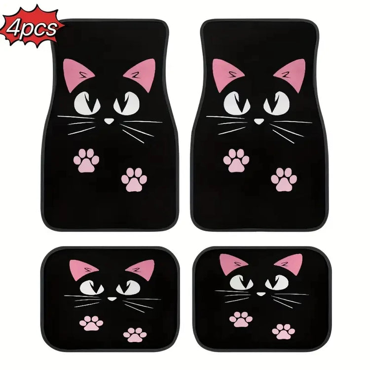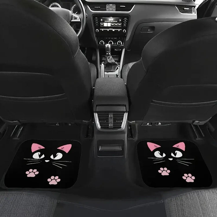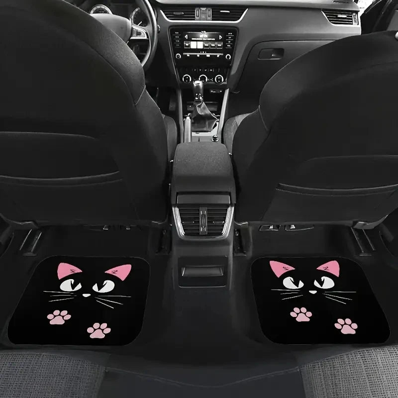 The car floor mats feature a retro cartoon cat design, adding a touch of fun and personality to your vehicle's interior.