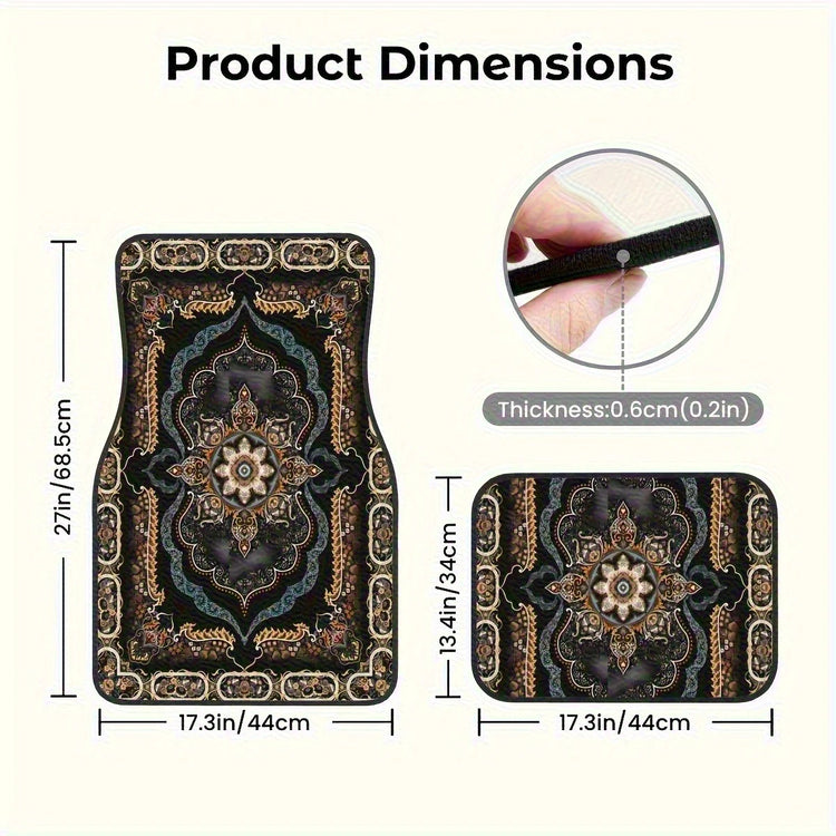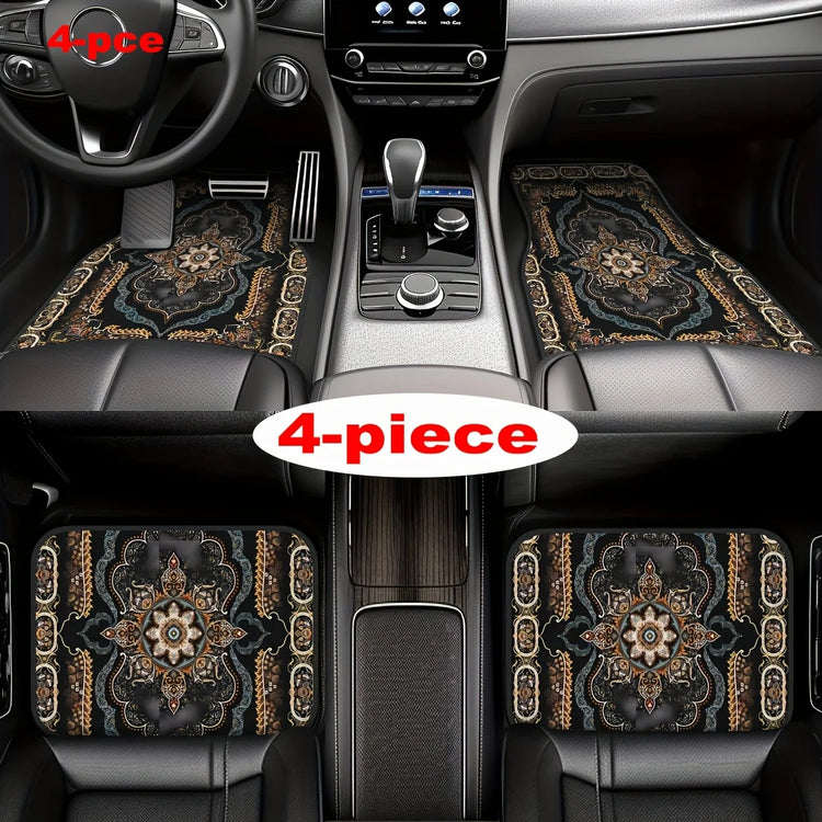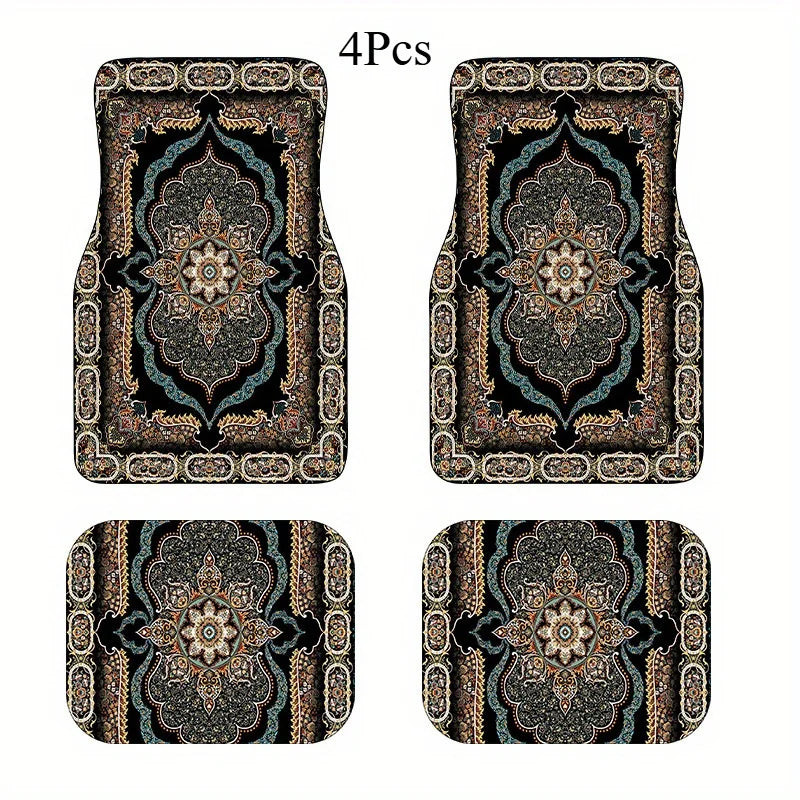 4Pcs set Bohemian Retro Style Pattern Car Carpet, Ethnic Style Design, Easy-to-Clean Car Interior Accessories, Art Decoration